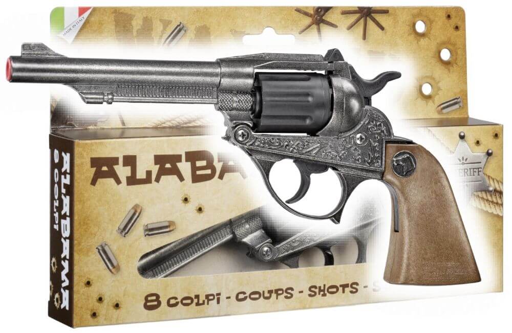 Kapslíková pistole kovbojská, 8miranná, kovová. Vhodné pro děti od 6 let.