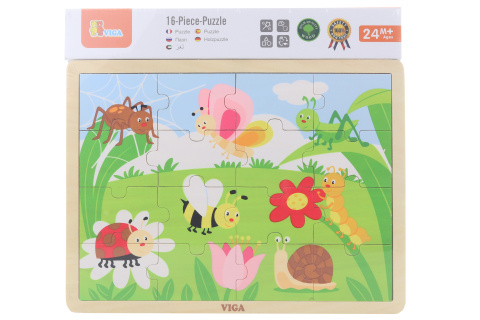Dřevěné puzzle s obrázkem přírody. Celkem 16 dílků. Rozměry obrázku cca 27,5 x 20 cm. Rozměry balení cca 30 x 27 x 1 cm. Věk 24m+