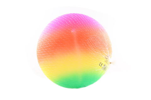 Míč v krásných duhových barvách. Baleno v síťce. Průměr cca 23 cm. Dodáváme ve vyfouknutém stavu. Věk 3+