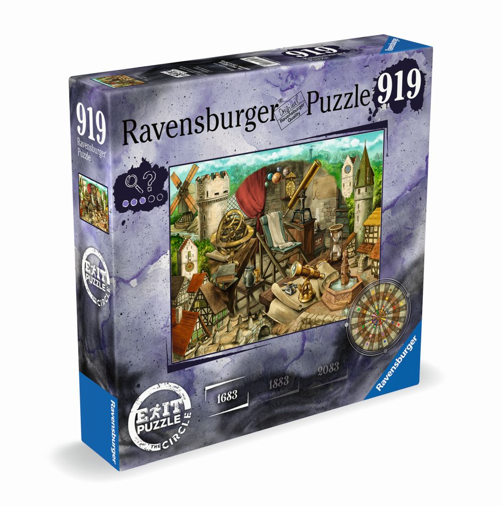 Koncept únikové hry je nyní k dostání jako 2D Puzzle. Zažijte nesrovnatelnou zábavu při skládání unikátního konceptu trilogie EXIT Puzzle – Ravensburg s motivem Ravensburgu v roce 1683 od společnosti Ravensburger. Jedinečné dílky puzzle do sebe perfektně zapadají. Po složení puzzle na vás čekají úkoly k vyřešení únikové hry. Dokážete rozluštit symboly a vyřešit hádanku? EXIT Puzzle – The Circle vám přináší napínavé hlavolamy zakomponované ve vzrušující misi. Jakmile je zábava se skládáním puzzle hotová, je čas pustit se do práce a mise EXIT začíná. EXIT Puzzle – The Circle přichází s novým konceptem záhad: součástí puzzle jsou speciální nástroje a čeká tu na vás větší výzva a více hádanek. Zábavná sběratelská edice díky tajemství, které je protnuté celou sérií 3 motivů – Ravensburg v roce 1683, 1883 a 2083.