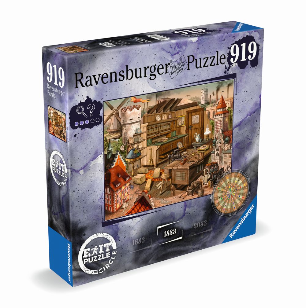 Koncept únikové hry je nyní k dostání jako 2D Puzzle. Zažijte nesrovnatelnou zábavu při skládání unikátního konceptu trilogie EXIT Puzzle – Ravensburg s motivem Ravensburgu v roce 1883 od společnosti Ravensburger. Jedinečné dílky puzzle do sebe perfektně zapadají. Po složení puzzle na vás čekají úkoly k vyřešení únikové hry. Dokážete rozluštit symboly a vyřešit hádanku? EXIT Puzzle – The Circle vám přináší napínavé hlavolamy zakomponované ve vzrušující misi. Jakmile je zábava se skládáním puzzle hotová, je čas pustit se do práce a mise EXIT začíná. EXIT Puzzle – The Circle přichází s novým konceptem záhad: součástí puzzle jsou speciální nástroje a čeká tu na vás větší výzva a více hádanek. Zábavná sběratelská edice díky tajemství, které je protnuté celou sérií 3 motivů – Ravensburg v roce 1683, 1883 a 2083.