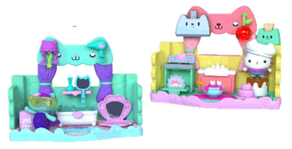 Speciální hrací sadu pokojíčků lze umístit do velkého domu Gabby’s Dollhouse a učinit jej tak útulnějším, nebo si s ním lze hrát samostatně. Hrací sada má dokonce vysouvací dno. Po jeho vysunutí se tak promění ve dvoupatrový hrací set. Obsahuje figurku. Položka obsahuje nekolik různých druhů v assortu.
