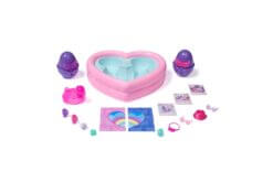 Zažijte bazénovou párty zvířátek Hatchimals! S vaší láskou a péčí neónově duhové Hatchimals ožívají s neónovými vajíčky, které se líhnou ve vodě a mění její barvu! Tato sada obsahuje 2 Hatchimals ve vejcích, bazének ve tvaru srdce a 14 doplňků. Před vylíhnutím si vyberte místo, které se snadno čistí a chraňte svou hrací plochu. Vejce vložte do bazénu, odstraňte křídla a pomalu naplňte srdíčka vodou – vaše postavy se začnou líhnout až obě strany srdce změní barvu! Po přidání většího množství vody se barvy smíchají do fialové a spojují vaše nejlepší kamarády na celý život! Objevte 2 Puppadees, která se dají naskládat do roztomilé pózy a spoustu doplňků pro dokonalou bazénovou party: plameňáka, plážový míč, sluneční brýle a další! Navíc má každá postava látkový ručník, který se spojí a vytvoří nejlepší srdce! Po hraní sadu důkladně osušte. Hračky s překvapením Hatchimals si zamilují všichni, kteří mají rádi sběratelské předměty, akční figurky, malé hračky, panenky a domečky pro panenky. Zábavný nápaditý dárek k narozeninám pro dívky i chlapce nebo velikonoční či vánoční dárečky a další! Přiveďte zvířátka Hatchimals k životu s neónově duhovou bazénovou párty zvířátek!