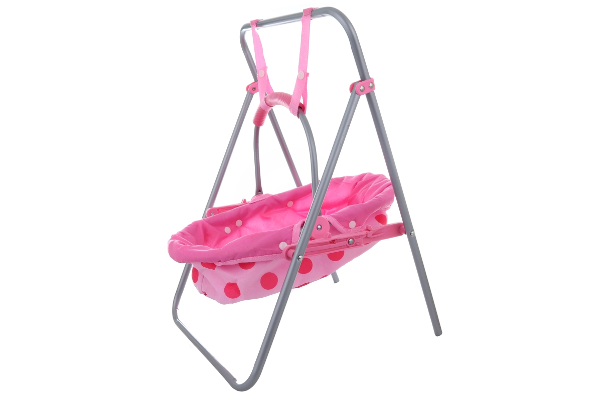 Houpací postýlka pro panenky. Postýlka má kovou konstrukci a postýlku z polyesteru. Rozměry postýlky cca 39 x 23 cm. Rozměry balení cca 66 x 42 x 6 cm. Baleno v sáčku. Věk 3+