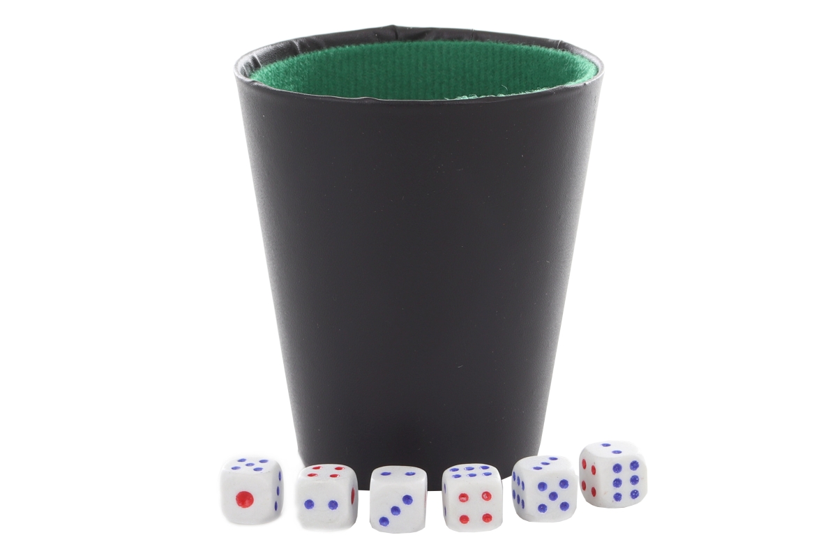 Hraci kostky s kelímkem – balení obsahuje šest kostek o velikosti cca 1,2 cm.Rozměr plastového kelímku uvnitř vypolstorvaného filcem cca 8 cm.Výrobek není hračka.