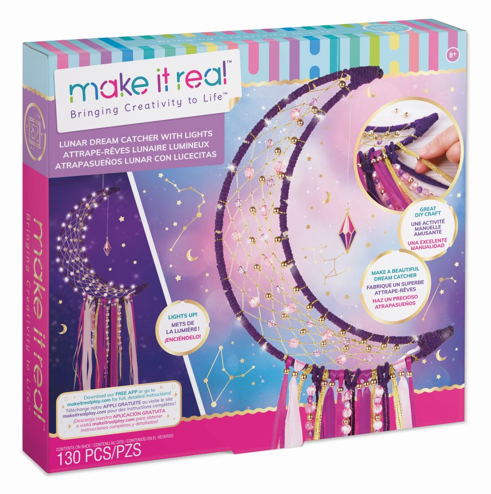 Balení obsahuje konstrukci ve tvaru měsíce, barevné korálky, stříbrnou šňůru, barevné provázky, peříčka na dekoraci, světýlka a instrukce. Vhodné od 8 let.