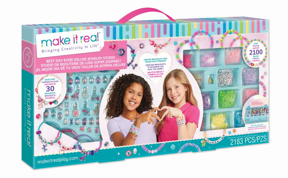 DIY výroba náramků na vrcholu módy! Vyrobte více než 30 náramků s přiloženou šňůrkou, řetízkem, různými přívěsky a více než 2100 korálky. Využijte celý výběr halo kouzel, heishi korálků a abecedních korálků k vytvoření náramků přátelství a obchodujte s přáteli… možnosti jsou nekonečné! Tato sada náramků je skvělým nápadem na dárek pro mladé módní nadšence, ať už k narozeninám, svátku nebo jen tak. Sestavování náramků přátelství rozvíjí jemné motorické dovednosti doplnění a umožňuje jim kreativně se vyjádřit. Tato aktivita je ideální pro děti ve věku 8+ a umožňuje jim být kreativní a prozkoumat svůj jedinečný styl. Obsahuje PlayTray pro snadné vytváření vzorů a organizování korálků před a během montáže.