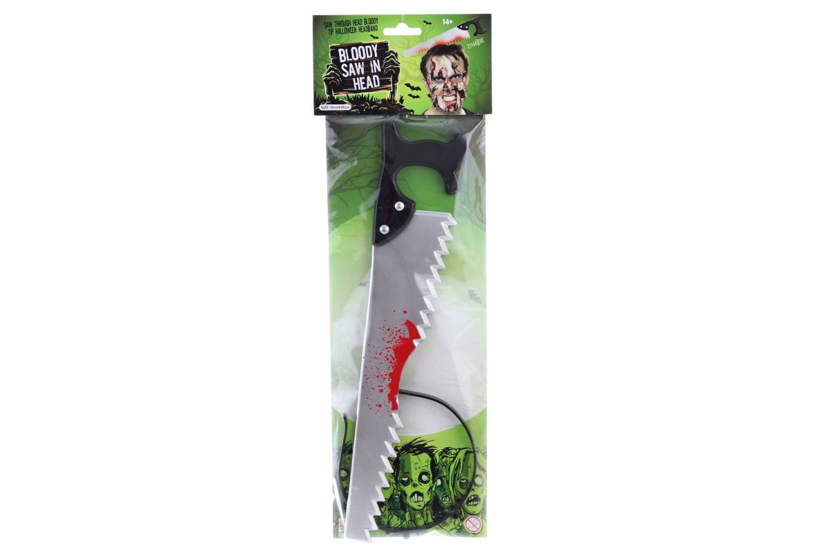 Žertovný doplněk na karneval. Balení obsahuje čelenku a pilku. Jednoduché napojení. Materiál plast. Rozměry balení 15x42x1. Věk 14+